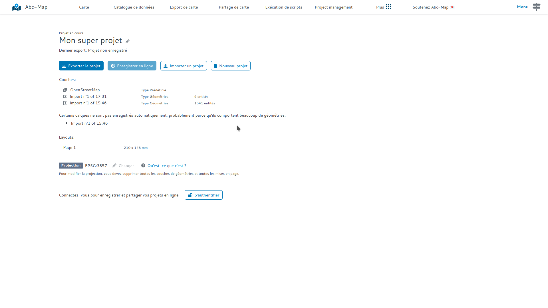 IntroductionLorsque vous utilisez Abc-Map, votre projet courant est enregistré automatiquement dans la mémoire de votre station de travail.